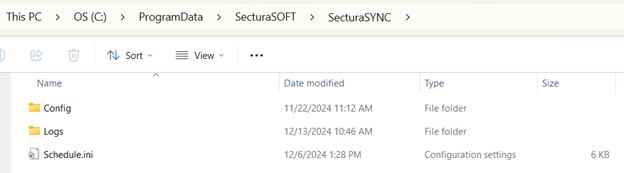 - Navigate to “C:\ProgramData\SecturaSOFT\SecturaSYNC\Config” to access the config file.