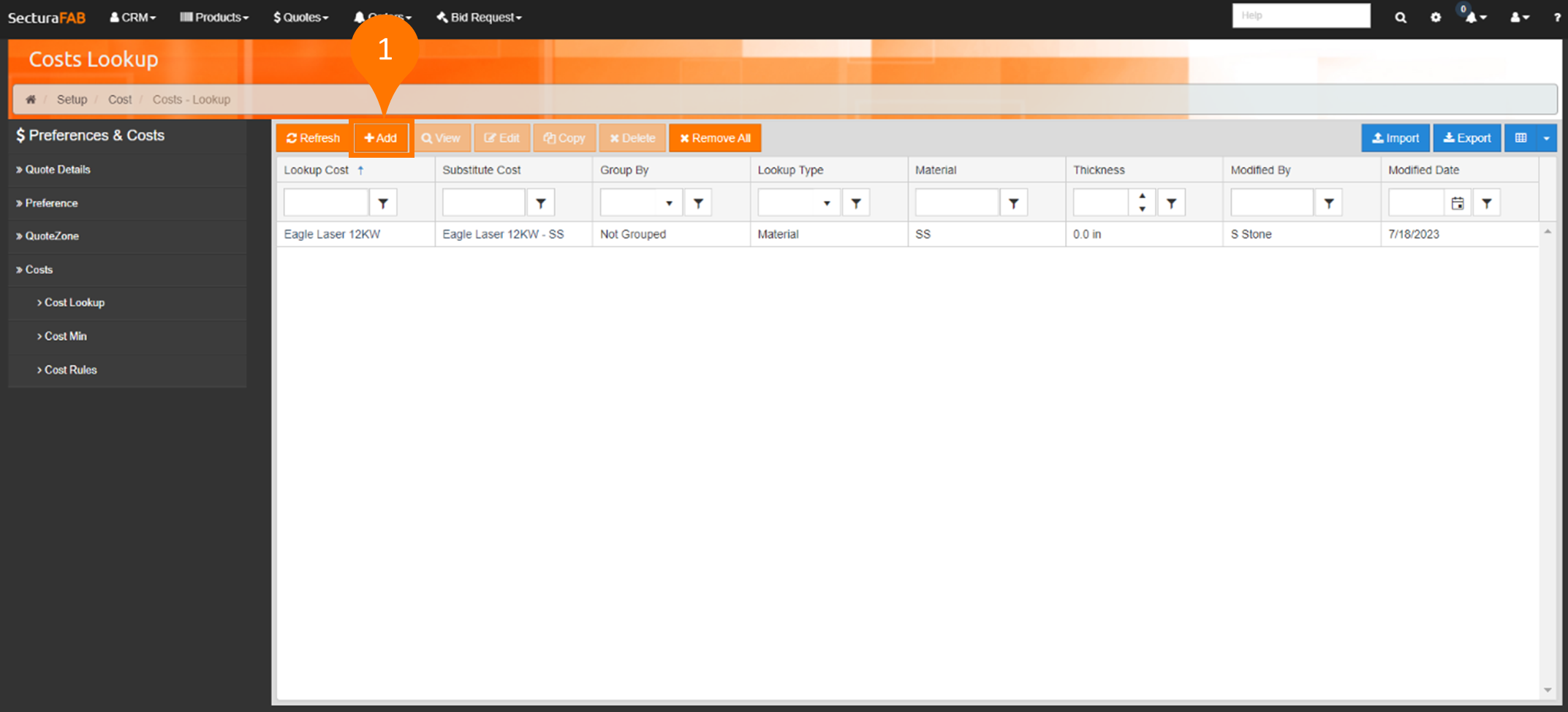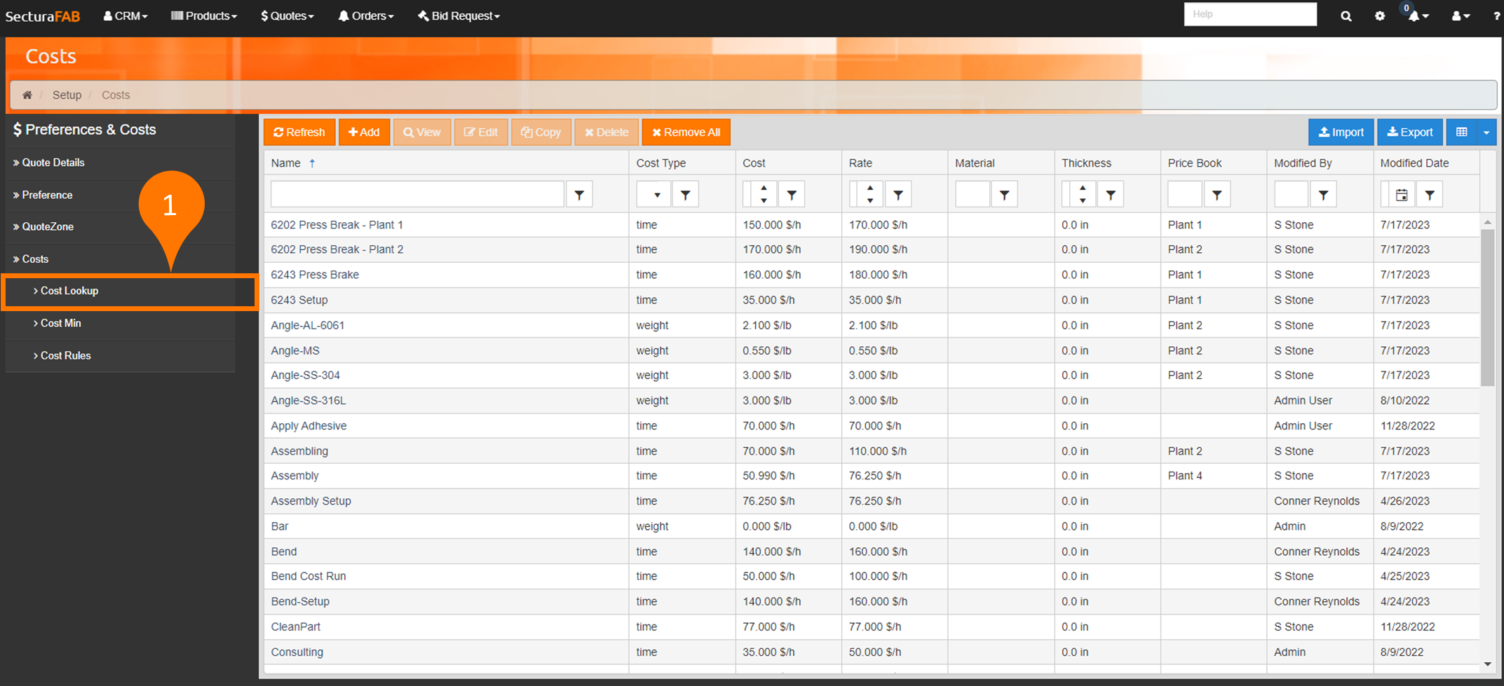 Cost Lookups allows you to replace a cost based on a condition in SecturaFAB.