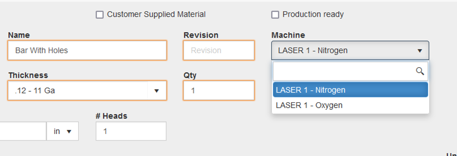 Before adding a flat part, if you have multiple gases, you must know which gas you want to use. Typically, this corresponds to thickness. Pick the appropriate laser with that in mind.