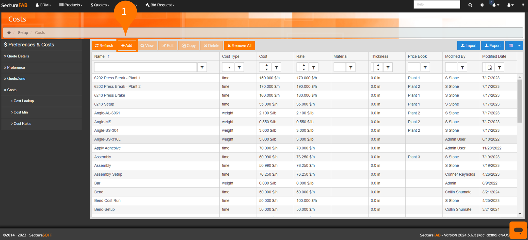 Now that you have successfully created a new cost, let’s explore how to manually edit costs in SecturaFAB.