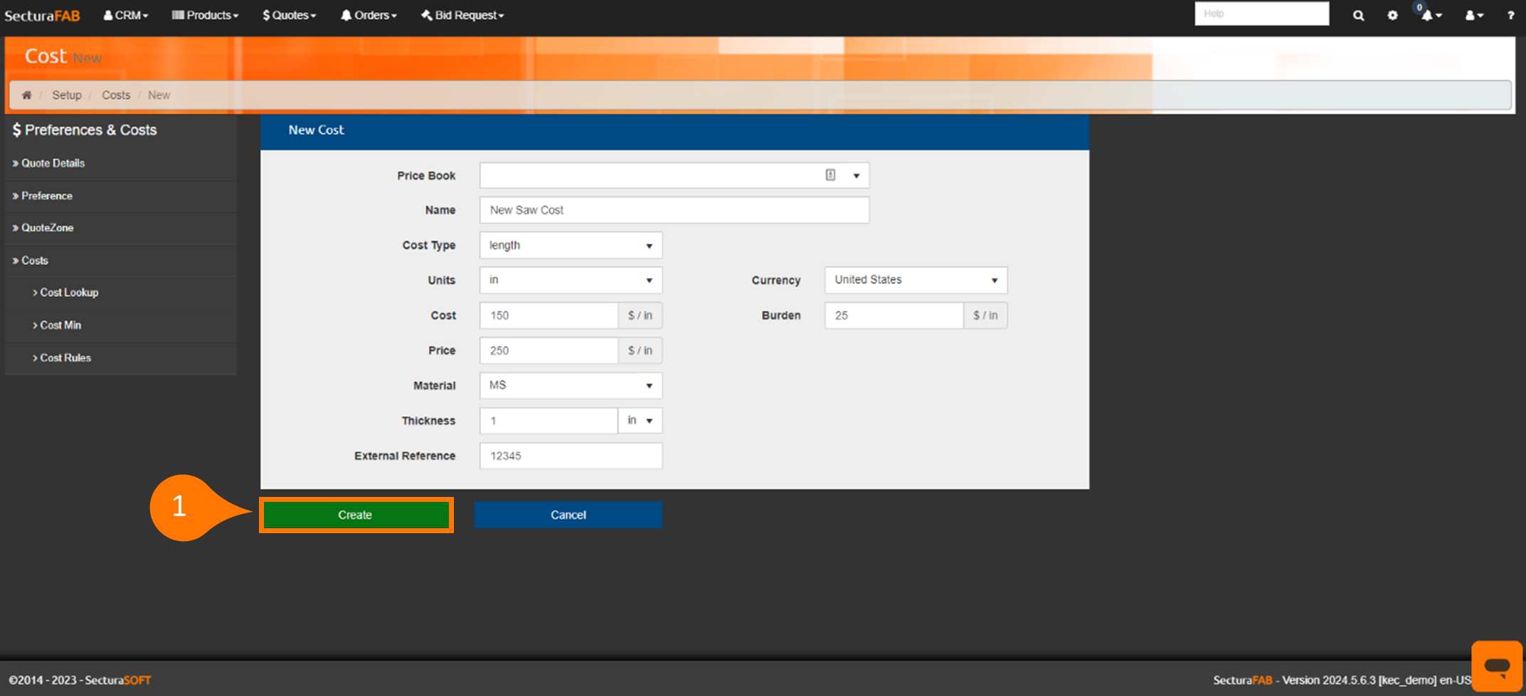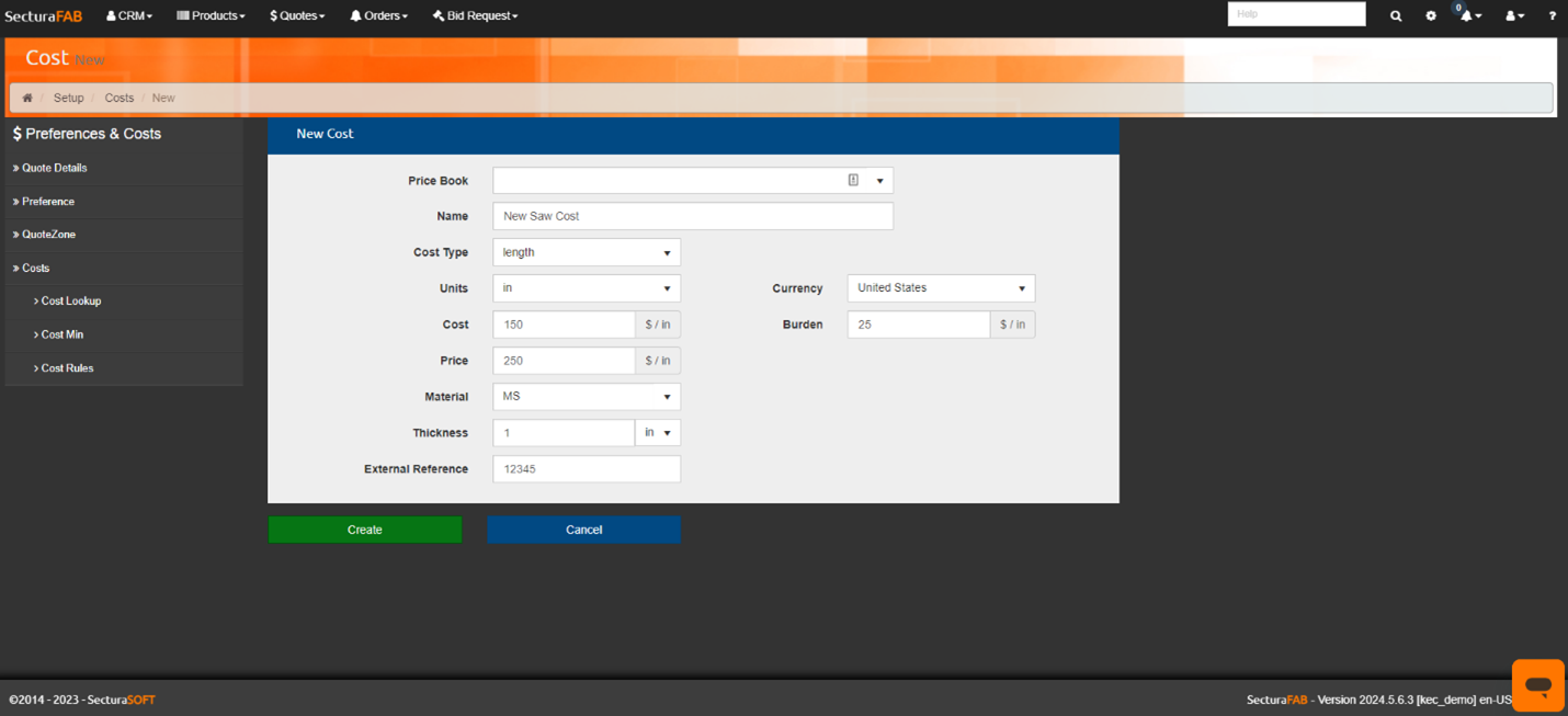 Congratulations! You now know how to create and edit costs in SecturaFAB.
