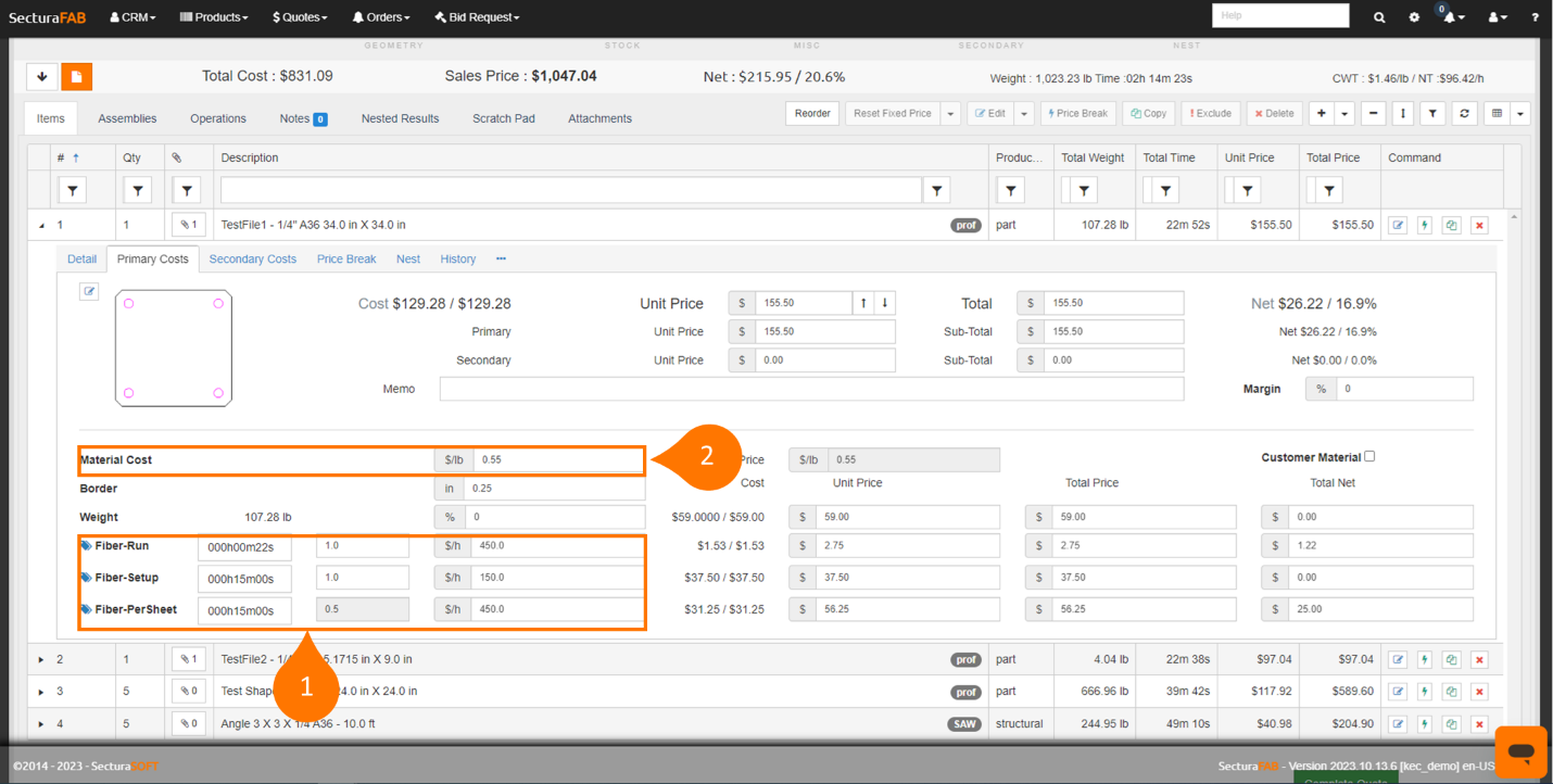 2. In the “Primary Costs” tab, you have the option to adjust costs for material and primary operations. Let’s adjust the material cost.