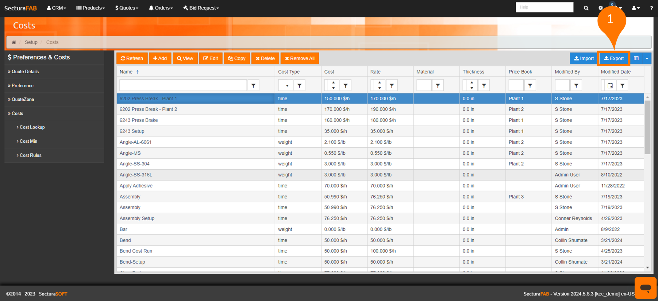 Now, let’s discover how to do bulk cost adjustments and export costs. This will allow you to save time when you need to adjust multiple costs at once.
