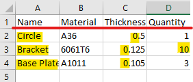 1. Under the Part Name column, it is important that the name here, matches the name of the DXF it is associated with.