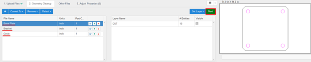 The third step is cleaning up the geometry that you have imported if needed and hitting the Green “next” button.
