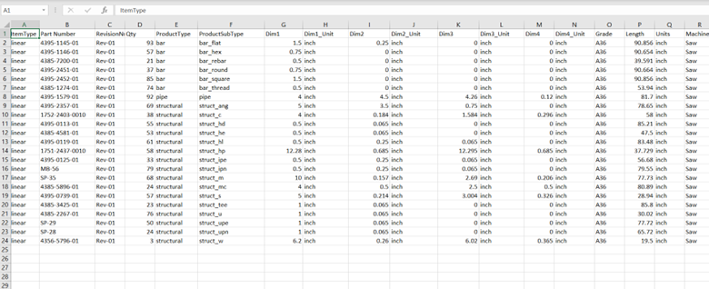 - Product Type — The classification or purpose of the product. Linear parts typically being bar, structural or tube.