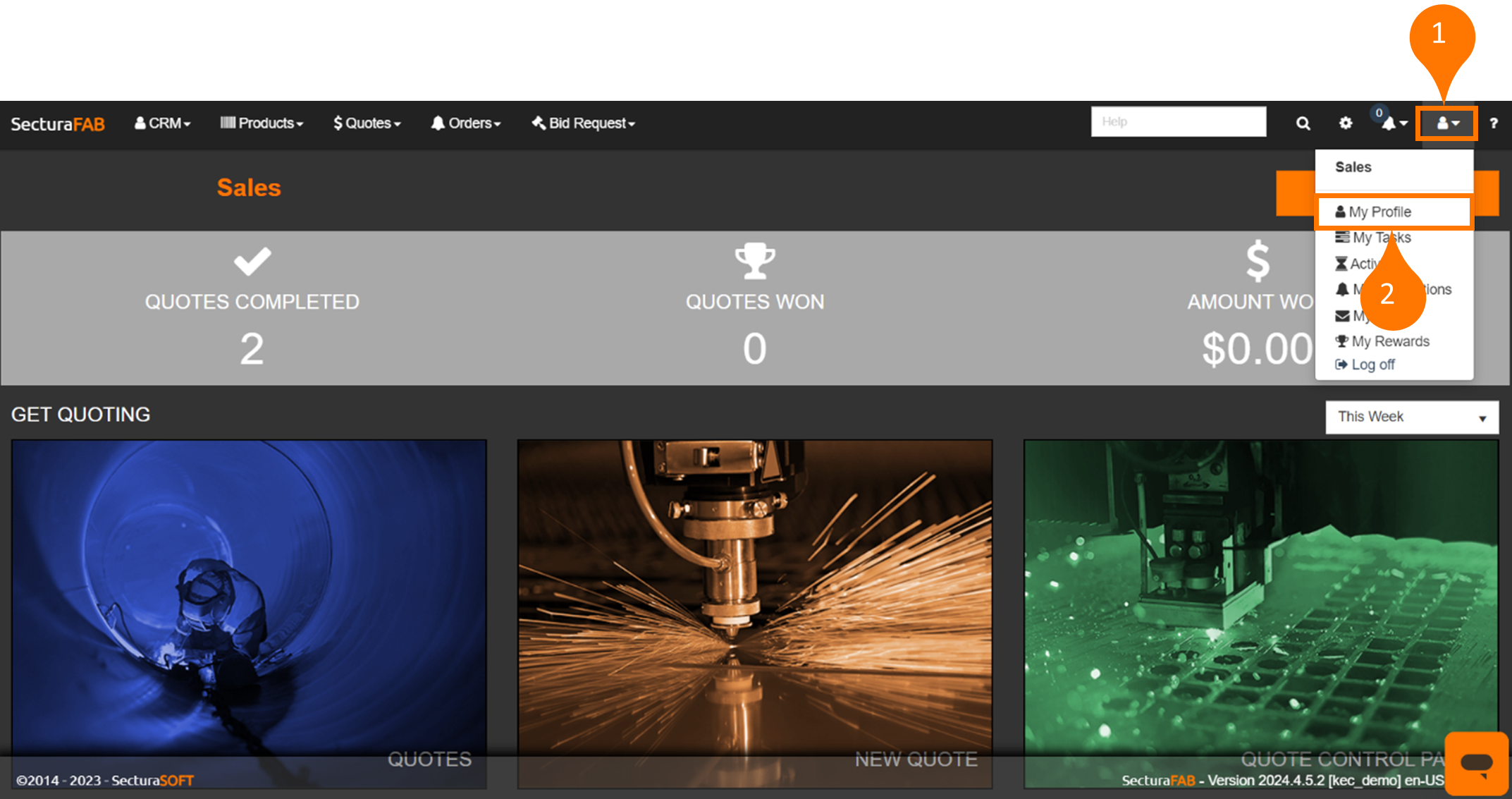 1. Select “My Profile” from the user dropdown menu.