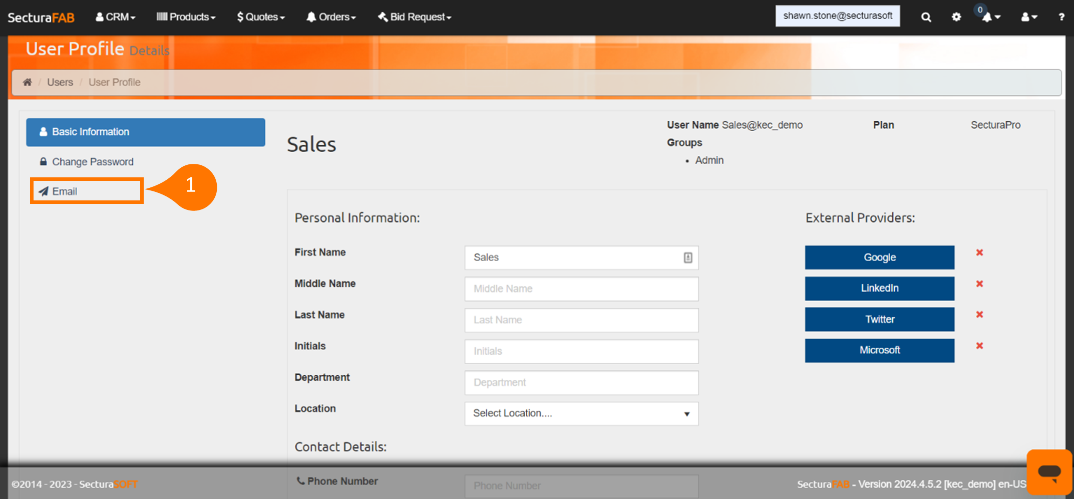 - Read Emails: Depending on IT restrictions, select this box for SecturaFAB to import emails into “Quote Requests.”