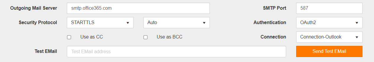 - Outgoing Mail Server: smtp.office365.com