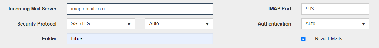 - Incoming Mail Server: imap.gmail.com