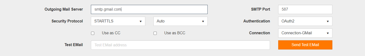 - Outgoing Mail Server: smtp.gmail.com