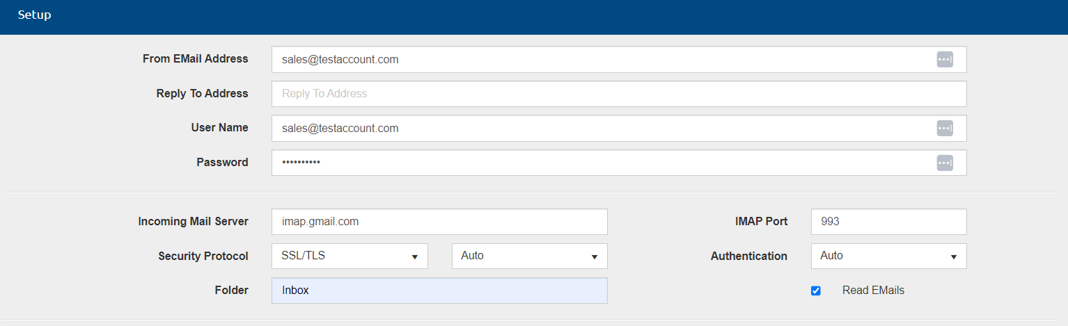 - Incoming Main Server: The IMAP Email server name.