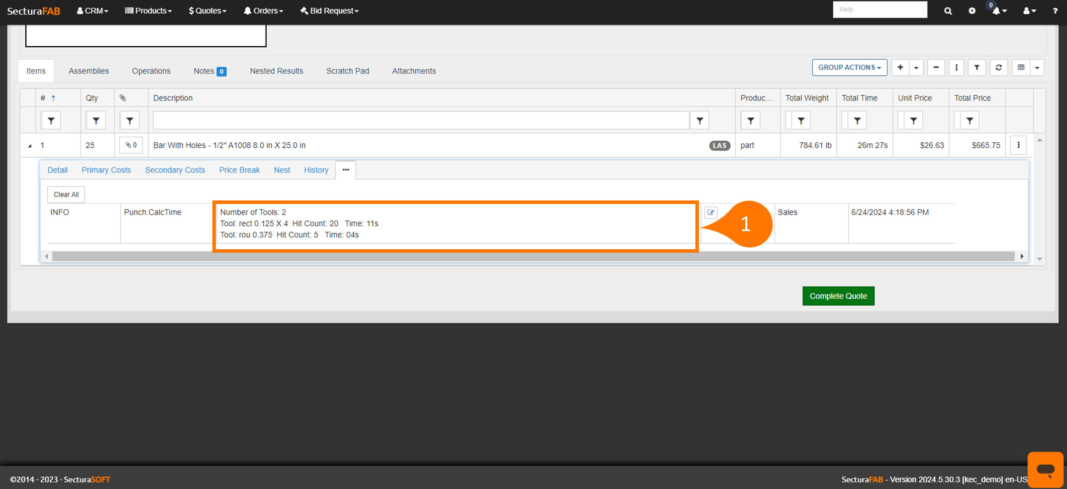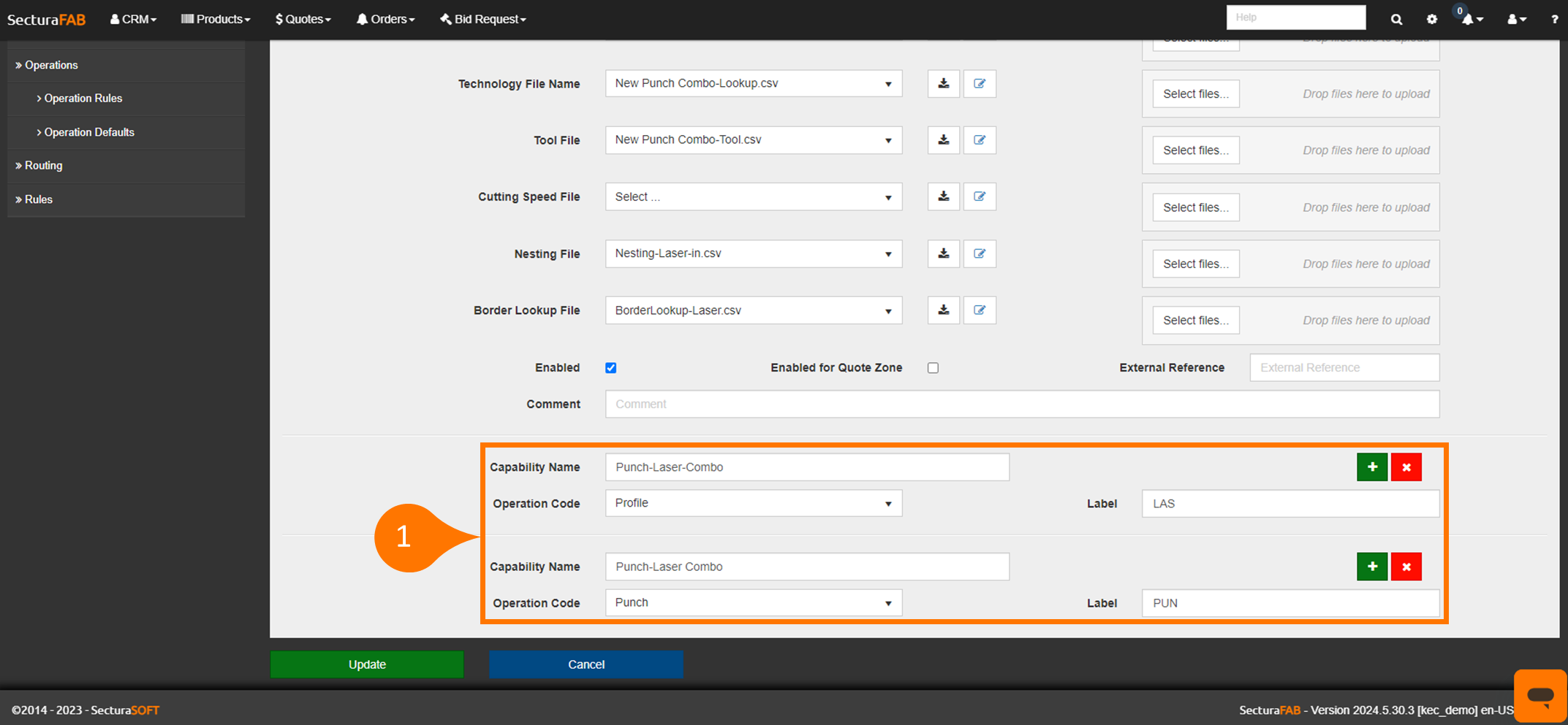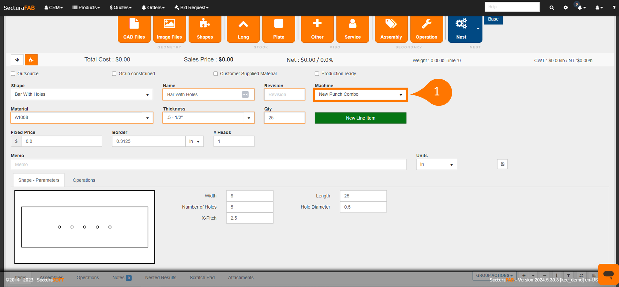 6. Also, unique to the Punch Combo operation, the equipment page showcases two capability names. These fields can be edited to ensure a tag is applied to the quote. Let’s now add this operation to a quote.