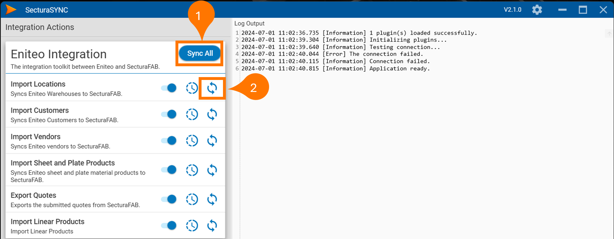 3. Reopen SecturaSYNC and retry the action (e.g., "Sync All," or the individual action described in your change order).