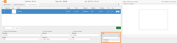- We have added the ability to map tools to geometry. If multiple tools are used to machine the part, you are quoting you can now visit the Edit Part window. If you are using a milling machine, you will notice a new Tool dropdown at the top of the selection list on the left