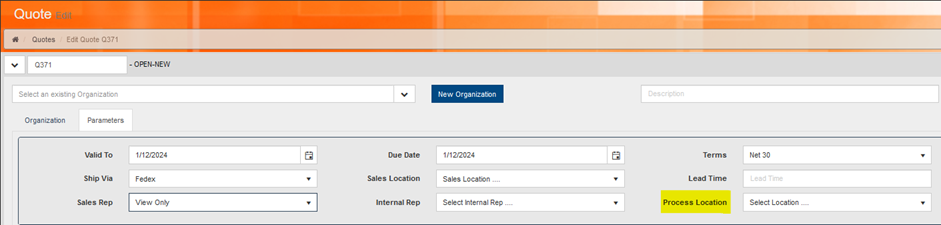 - With this update a line item will reference its process location from the top level of the quote if the assigned equipment is not tied to a process location. However, if the equipment is tied to a process location that location will take precedence like it has. This allows you more flexibility in how that field is populated for your line items.