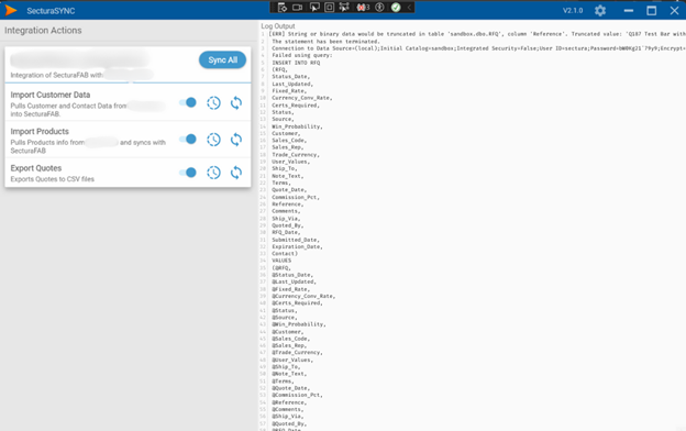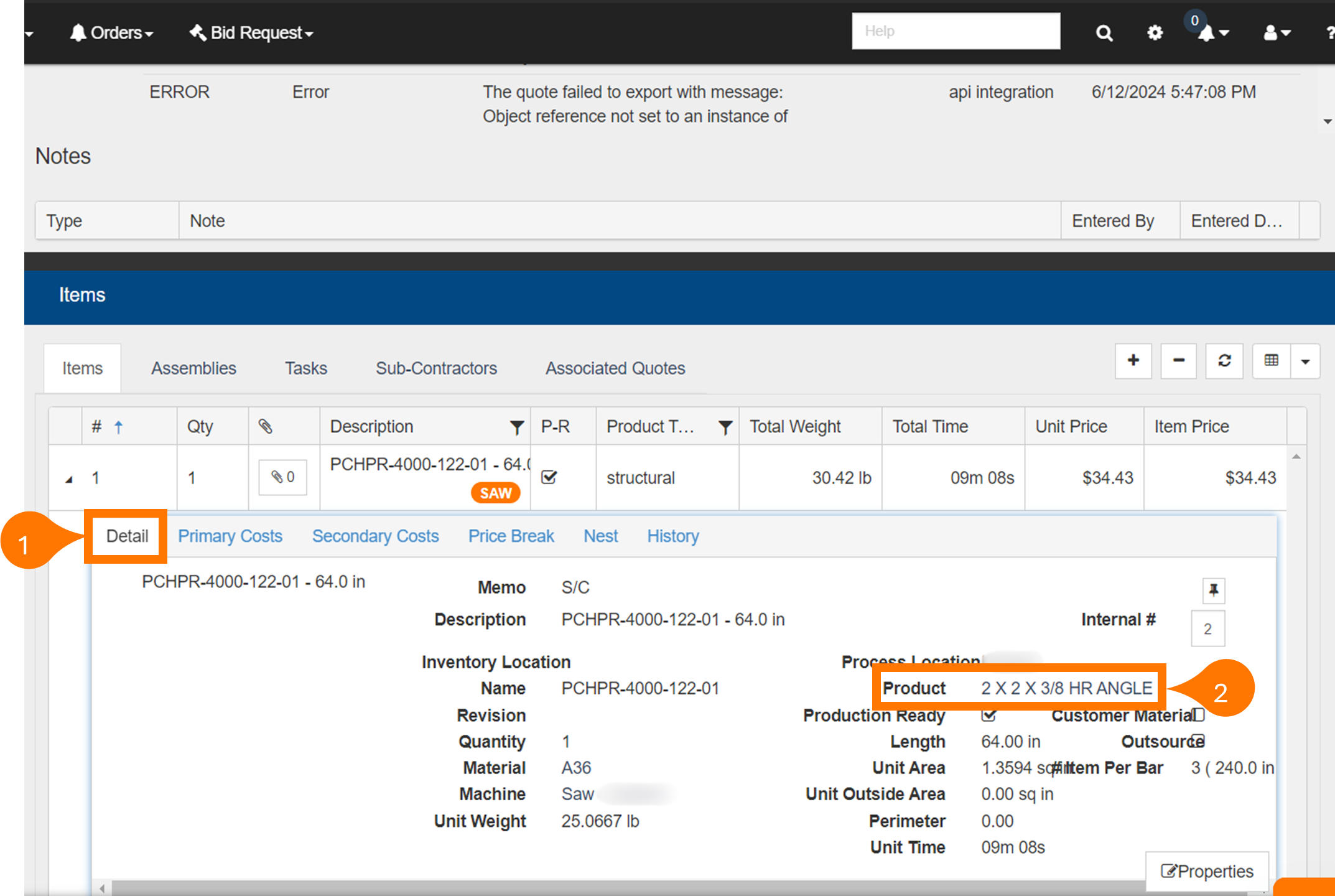 If the message reads as “Object reference not set to an instance of an object,” in either SecturaFAB or SecturaSYNC application, go into SecturaFAB and confirm that the Product on the Details Tab of the line item is properly linked.