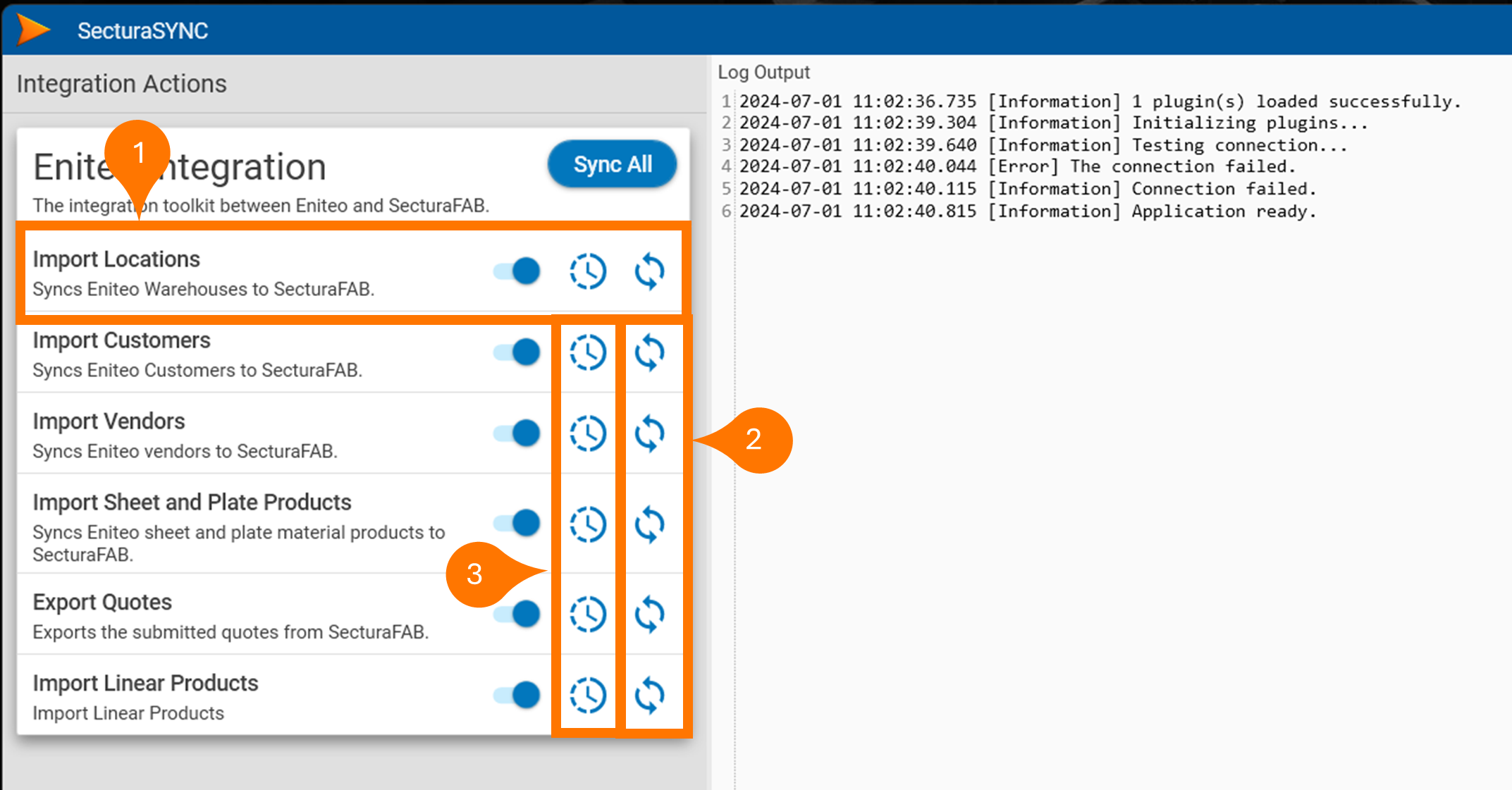 Use the clock icon to set up sync automation schedules. The frequency is up to you.