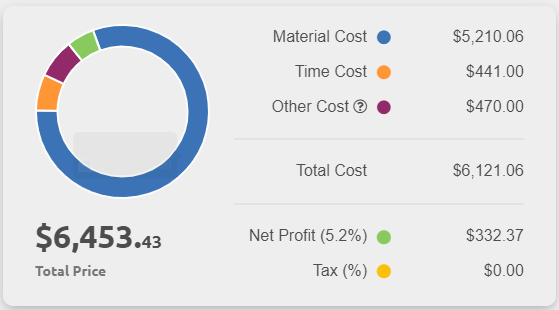The revamped total price section breaks down all costs including, materials, time, miscellaneous expenses, and taxes, so you can instantly spot shifts and track net profits at a glance.