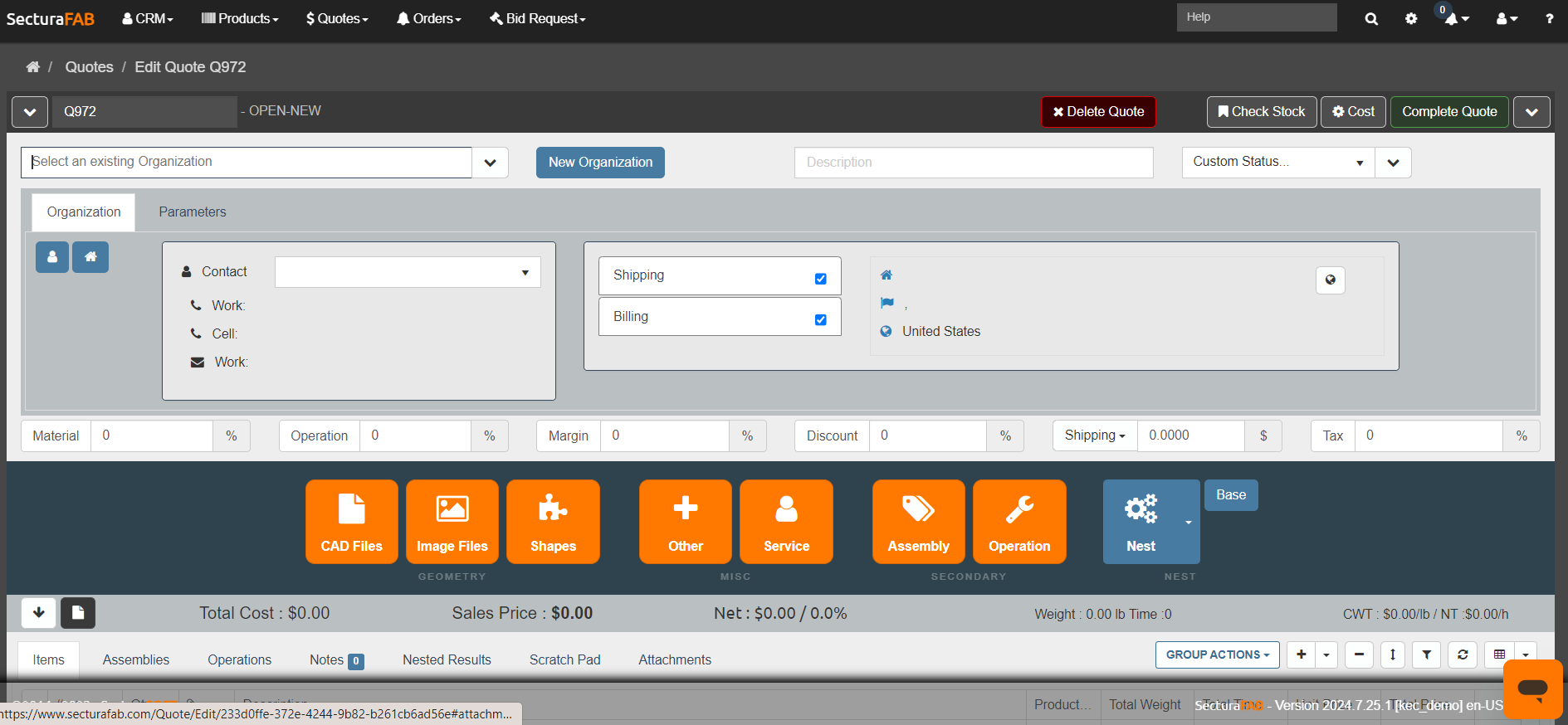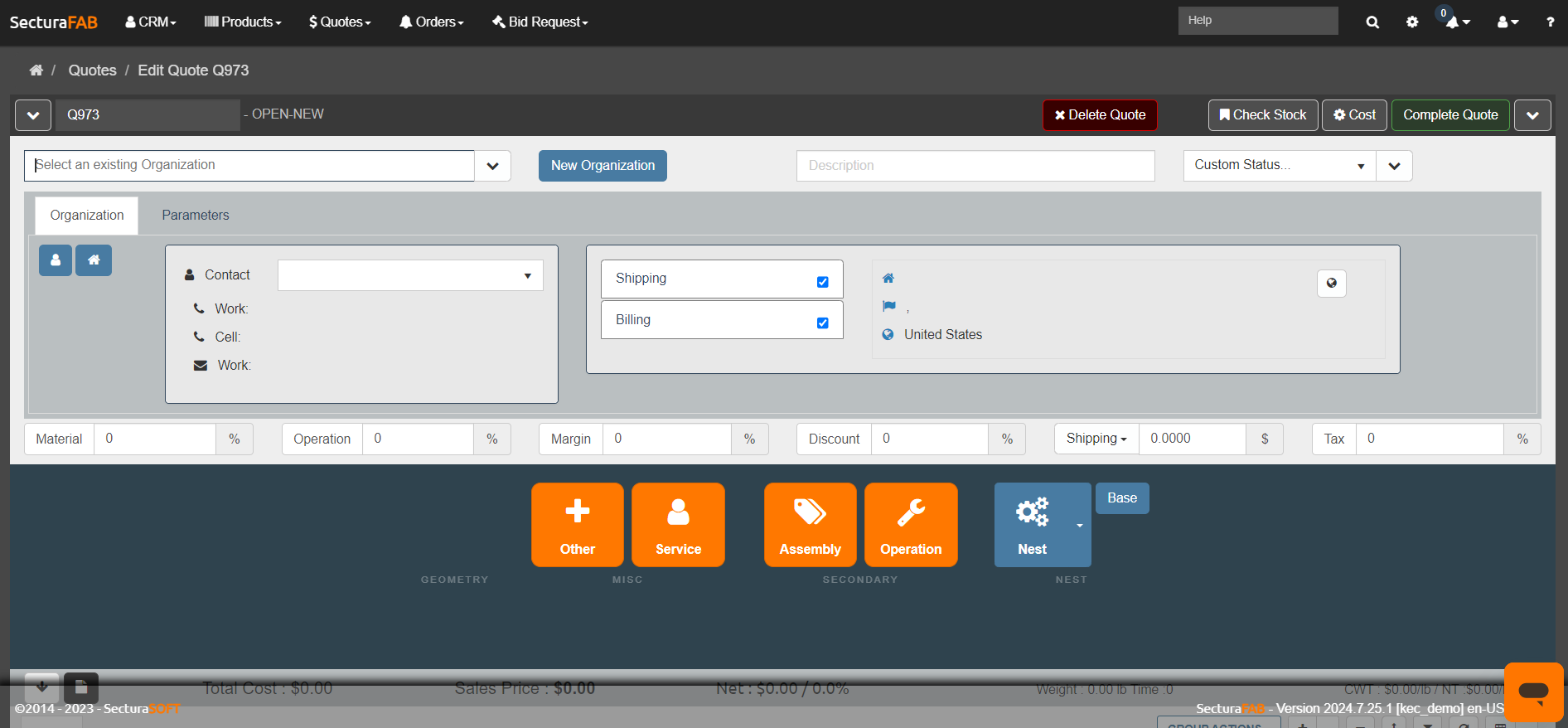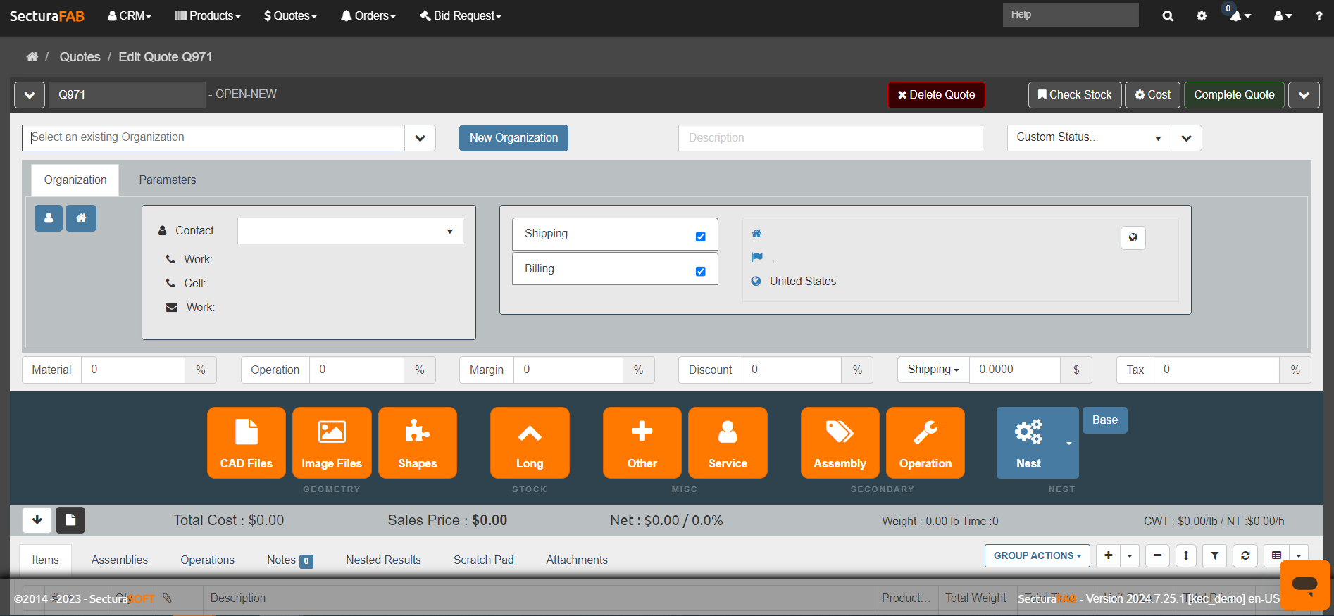 When the Show Geometry Button is set to No, then the CAD File and Image File options will not be available when creating quotes or orders.