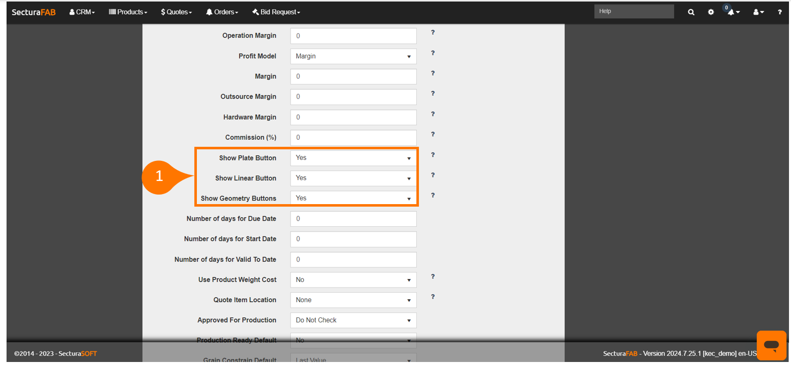 When the Show Plate Button is set to No, the Plate option will not be available when creating quotes or orders.