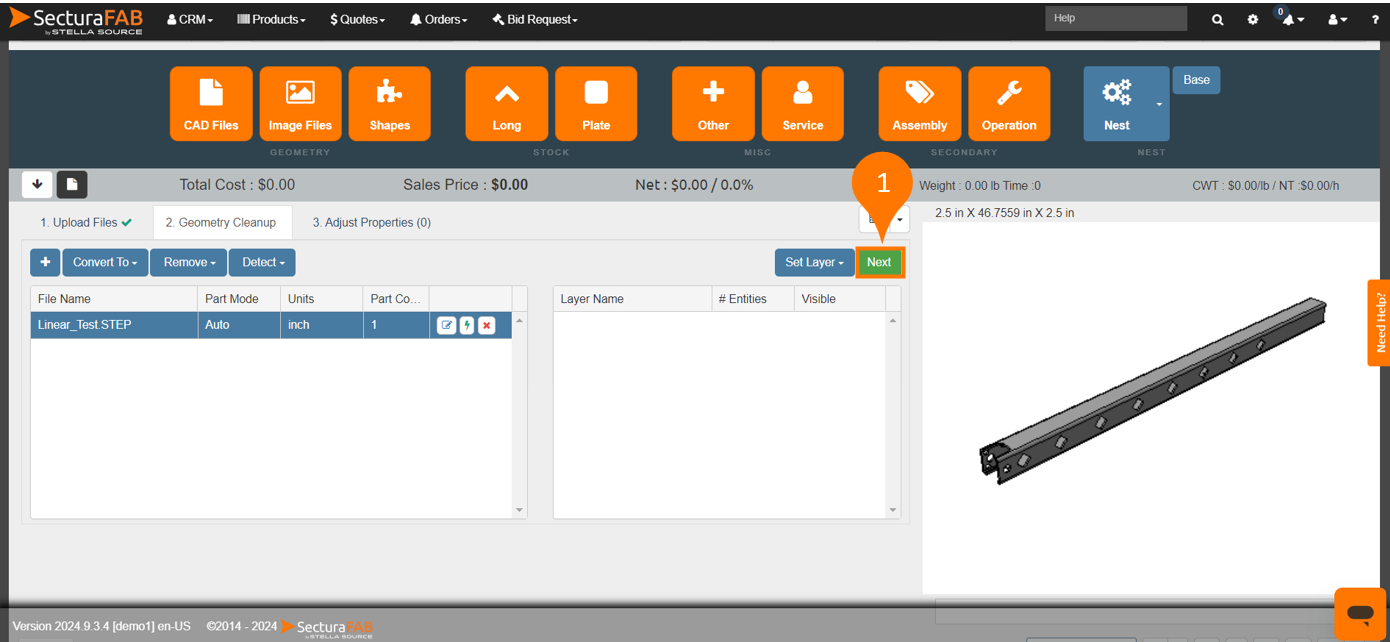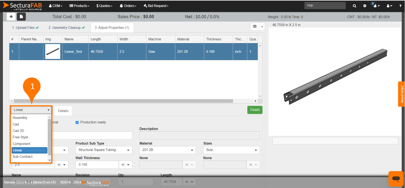 4. Adjust parameters such as product type, material, machine and material costs. Select “Finish” to add it to your quote. Discover the key benefits of how SecturaFAB accurately identifies length with centerline technology.