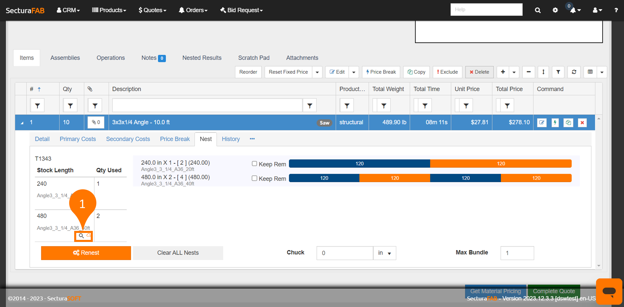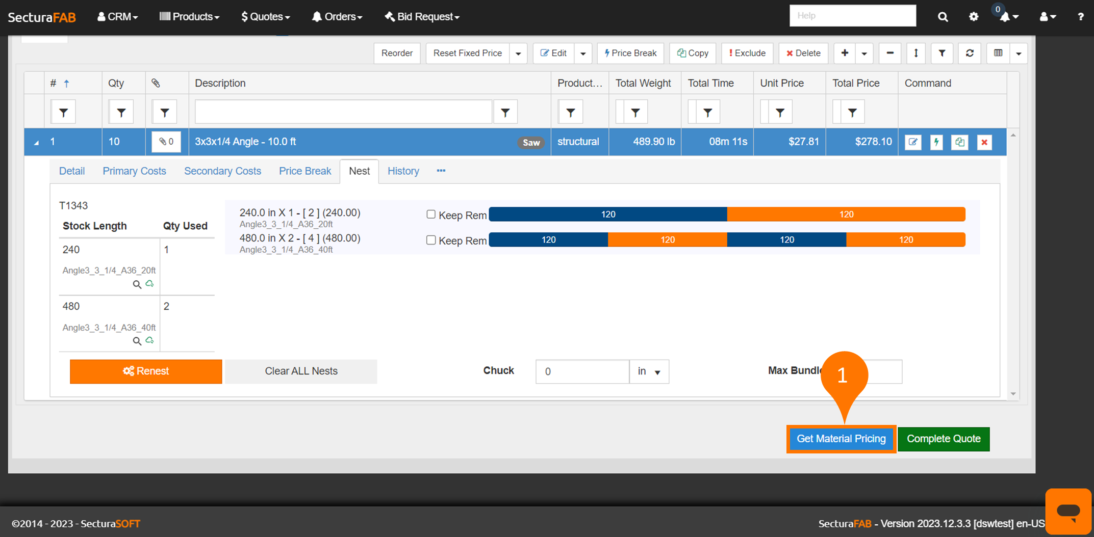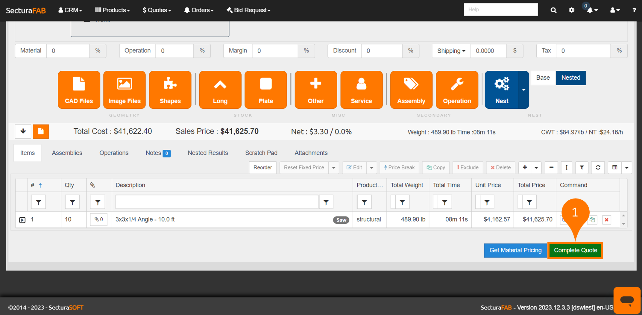 11. Material pricing is now applied to your quote. After checking your material margin, select “Complete Quote” and send it to your customer.