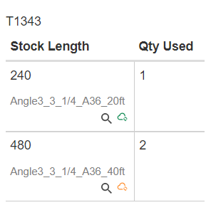 4. The stock length of 240 is mapped to our universal product list. The stock length of 480 is not mapped. Notice the color of mapped products (green) vs. unmapped products (orange).