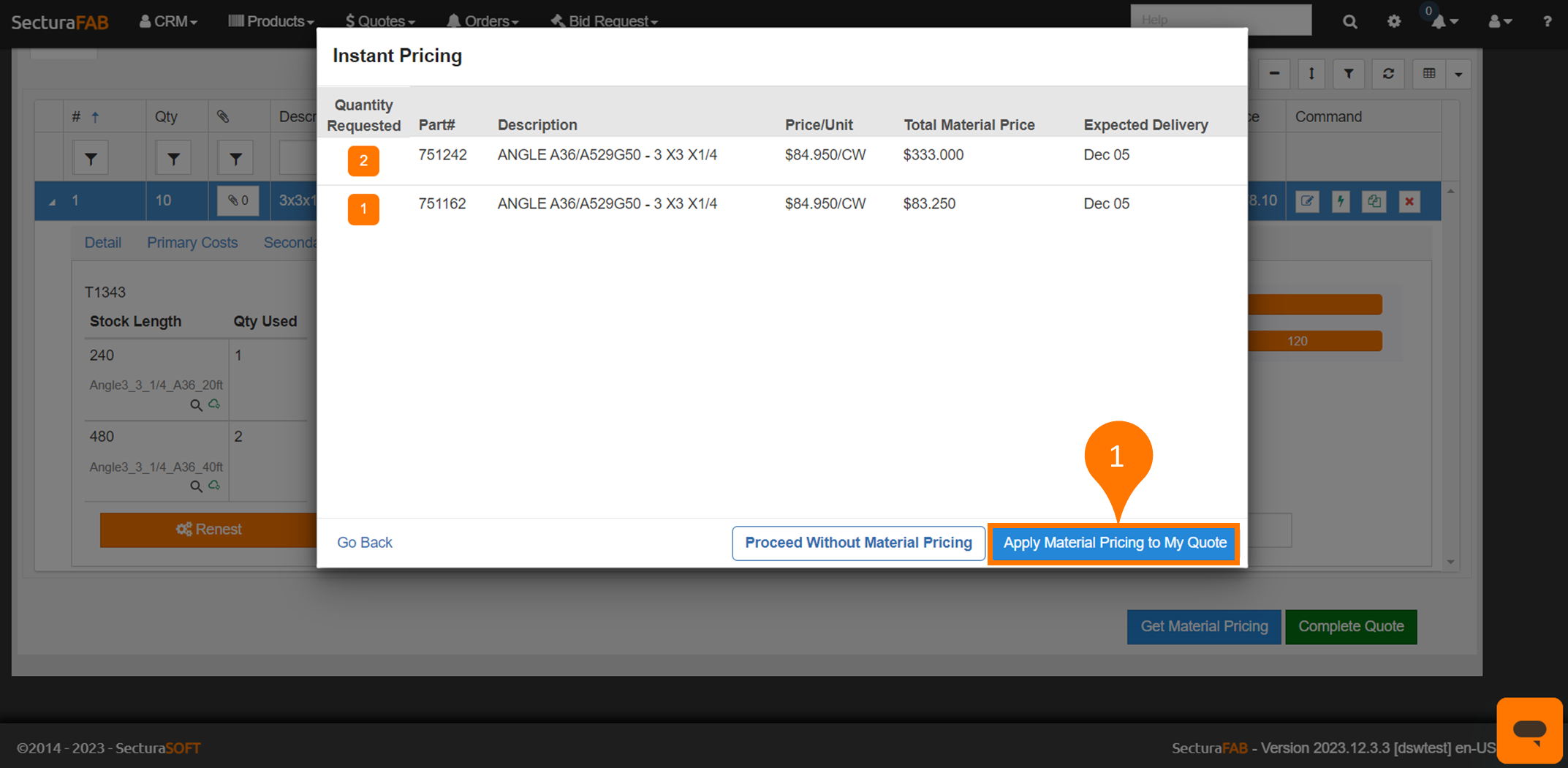 10. Select “Apply Material Pricing.”