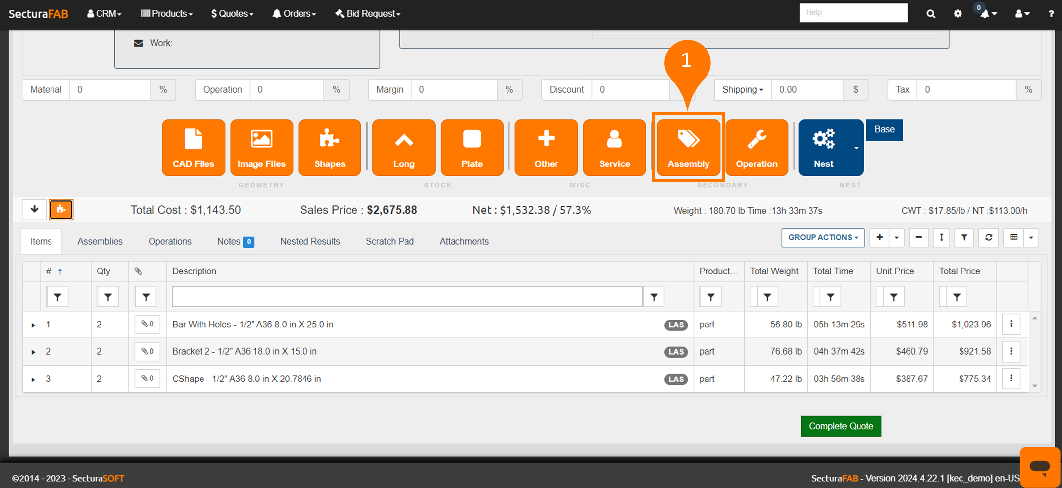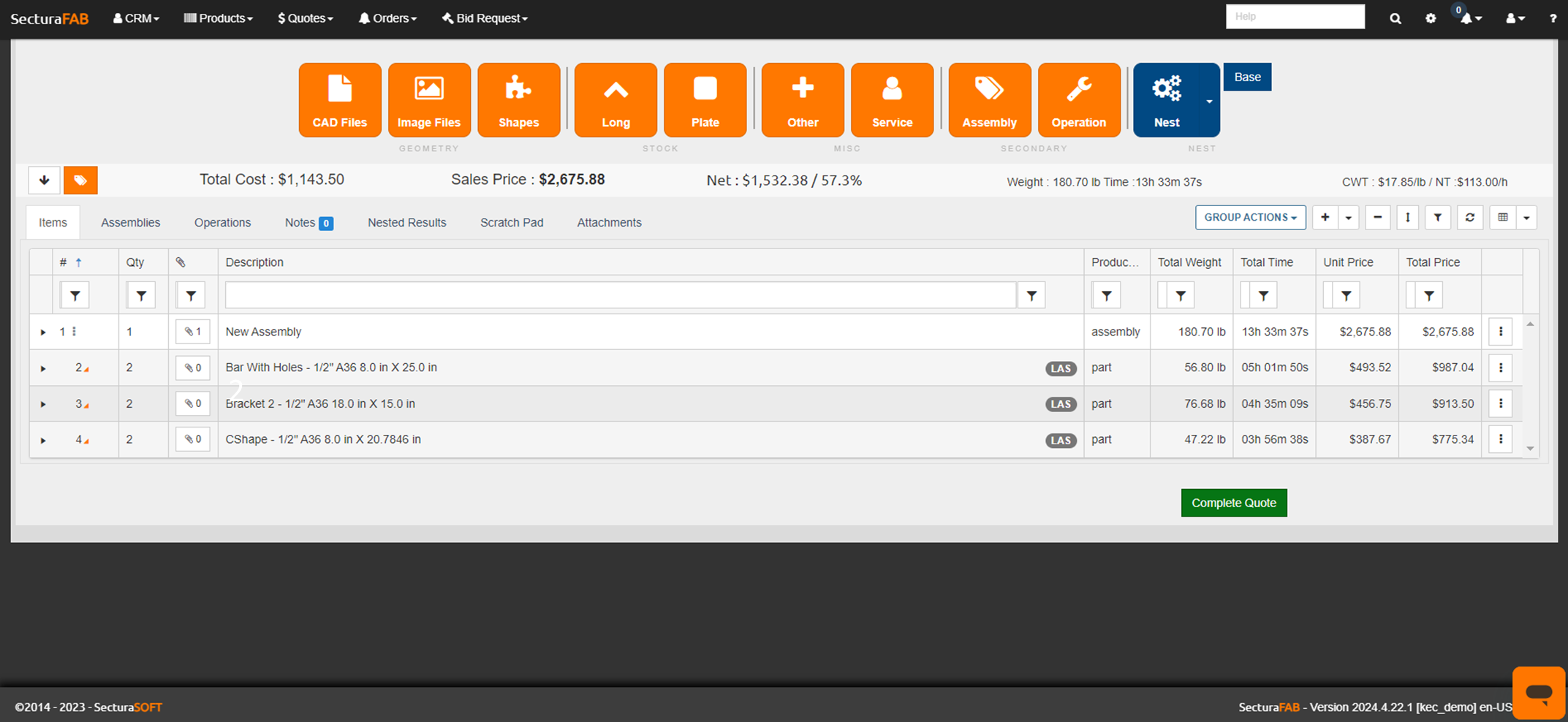 Larger products made up of a collection of smaller parts are called an Assembly. Whether you need a weldment or STEP assembly quote you can easily create and edit complex assemblies in SecturaFAB.