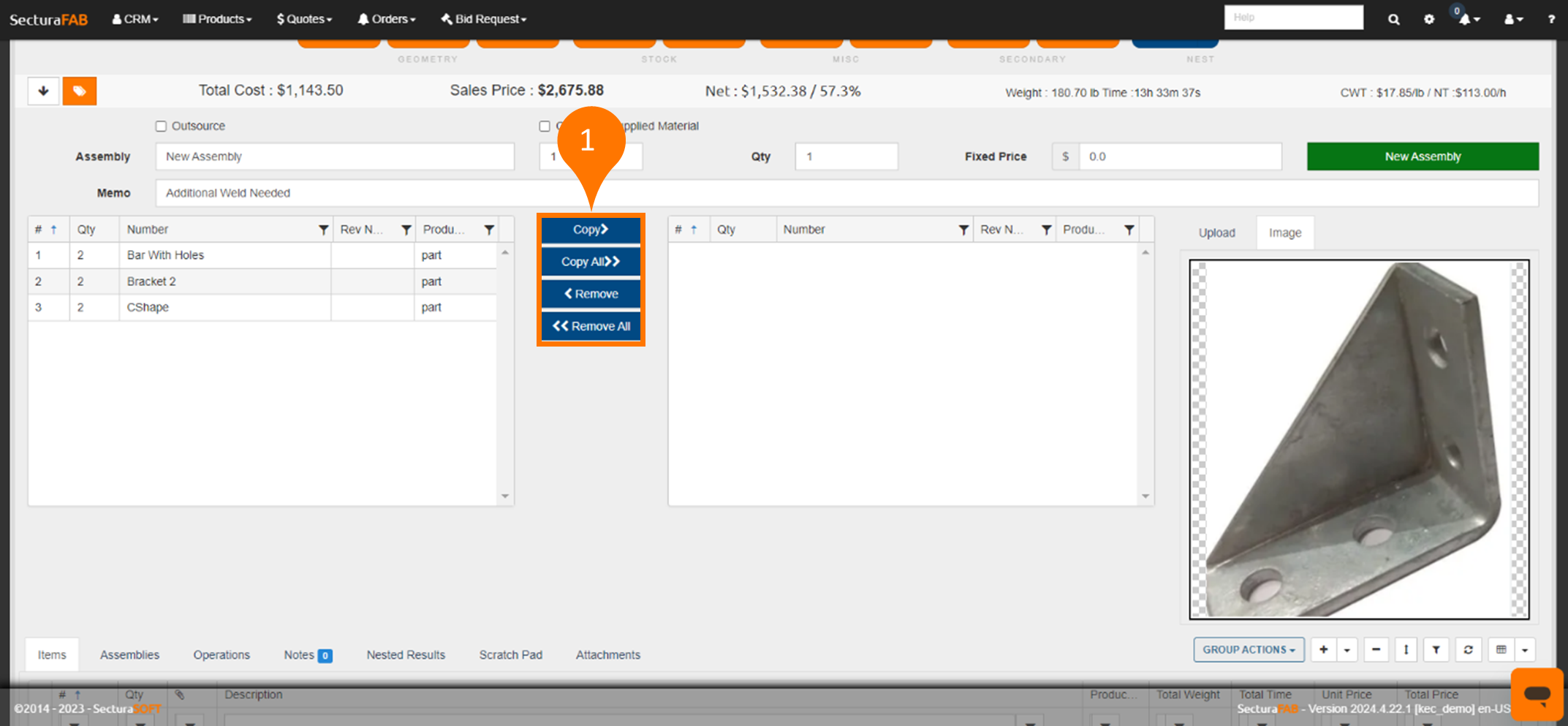 4. In this example, select “Copy All” to add all the line-items to the assembly. Then, select “New Assembly.”