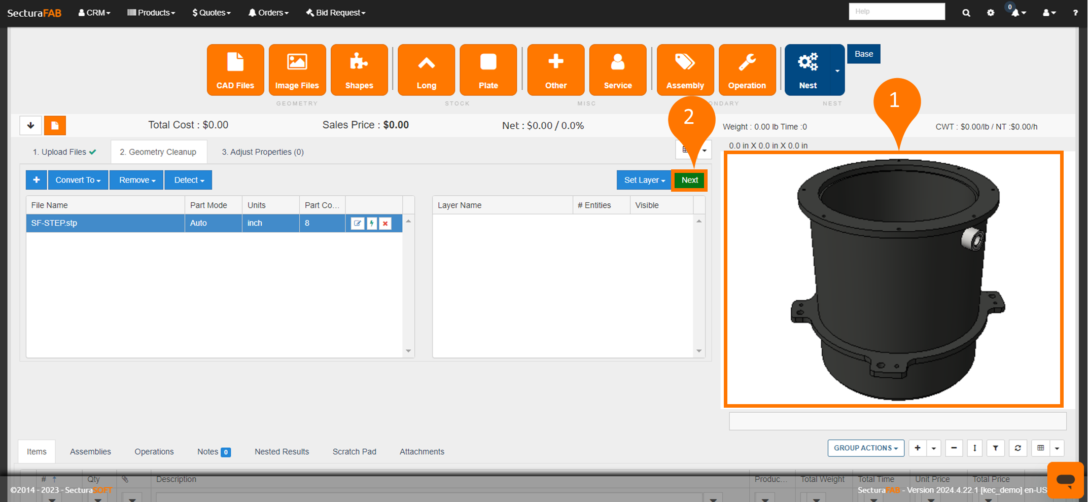 2. Once uploaded, a clear image of the STEP assembly displays. Select “Next.”