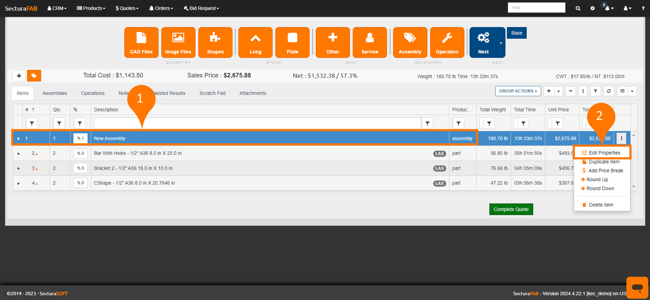 - Remove All – Remove all line-items from the assembly.